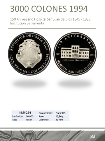 3000 COLONES 1994 150 Aniversario Hospital San Juan de Dios 1845 - 1995 Institución Benemérita 168